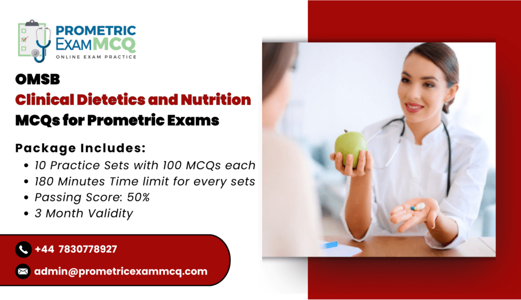 - OMSB Prometric Exam MCQ for Clinical Dietetics and Nutrition consists of 10 Practice Exam Sets