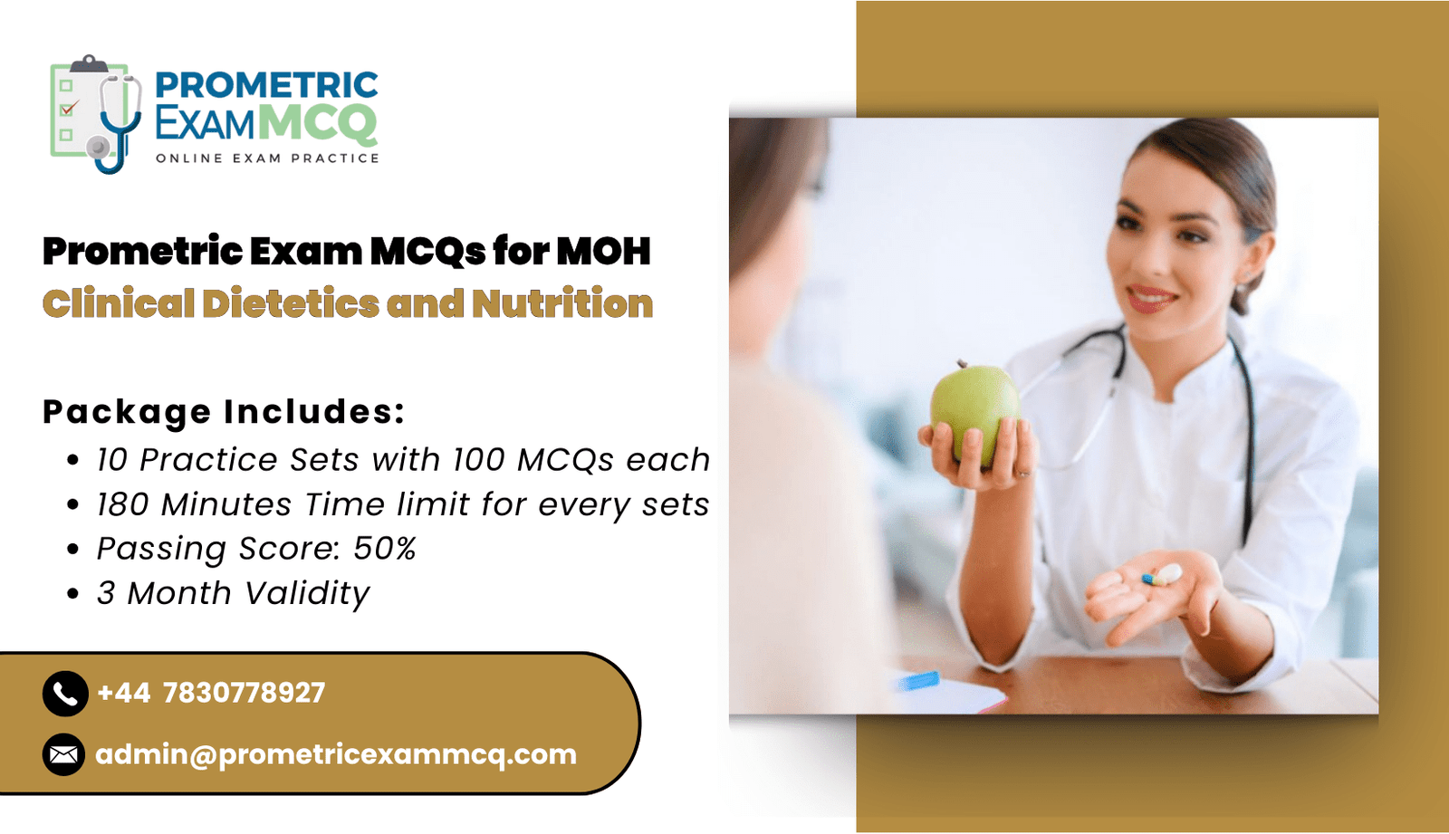 Clinical Dietetics Prometric MCQs consists of 10 Practice Exam Sets