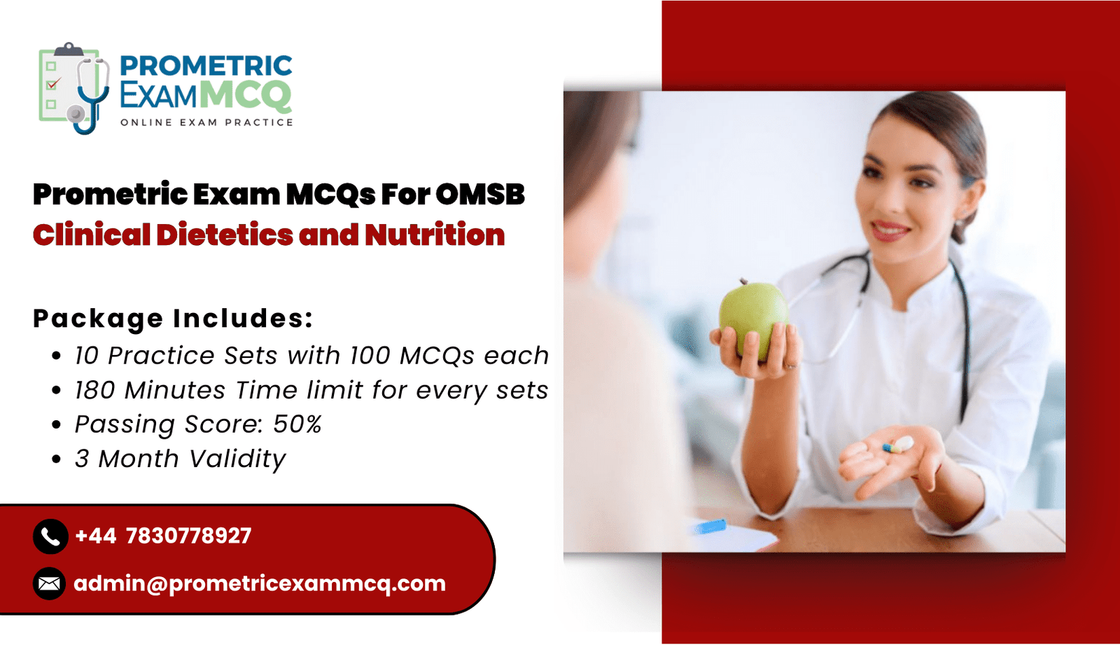 Clinical Dietetics Prometric MCQs consists of 10 Practice Exam Sets