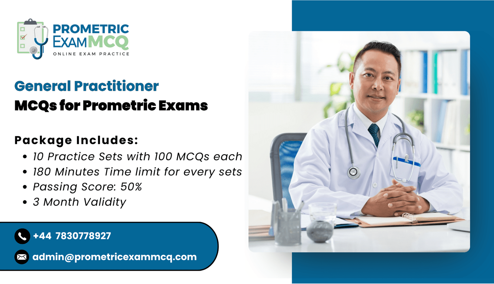 - Prometric Exam MCQ for General Practitioner . Service consists of 10 Practice Exam Sets