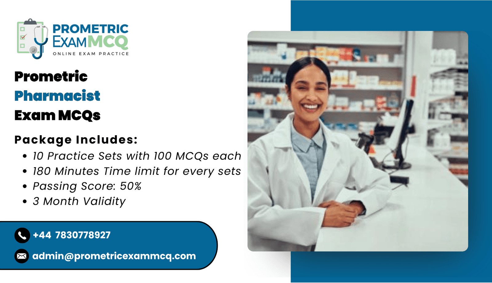 - Prometric Exam MCQ for Pharmacist consists of 10 Practice Exam Sets