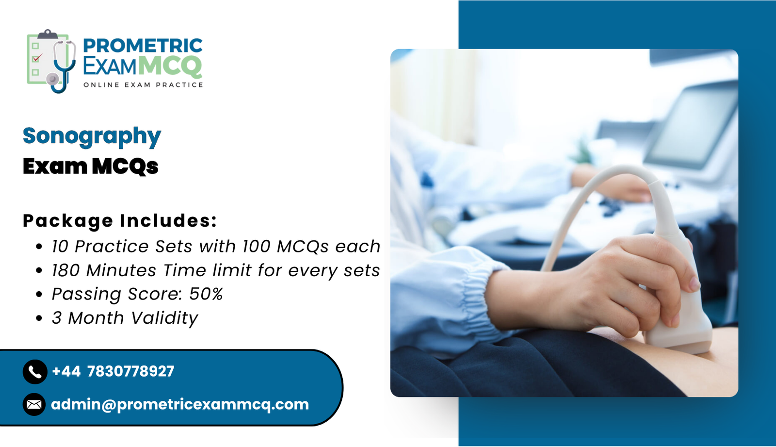 Sonographer Prometric MCQs consists of 10 Practice Exam Sets