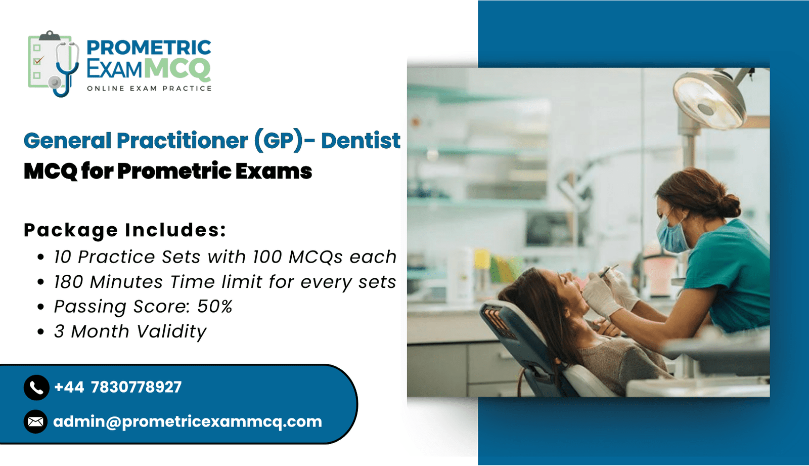 - General Practitioner (GP) – Dentist MCQ for Prometric Exams consists of 10 Practice Exam Sets
