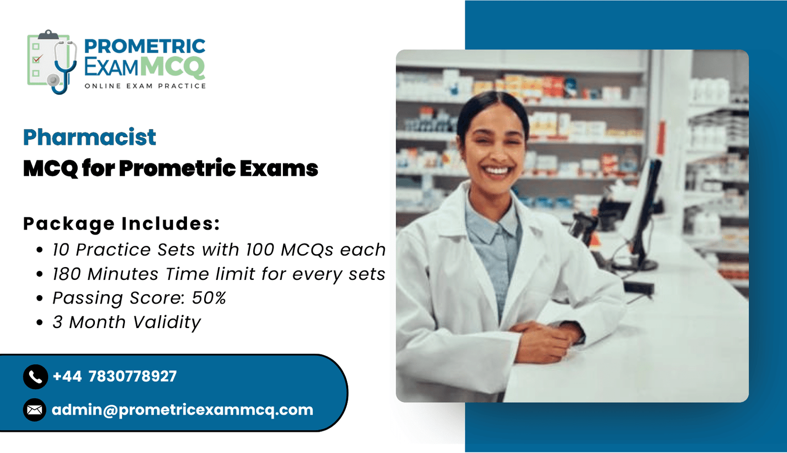 - Pharmacist MCQ for Prometric Exams consists of 10 Practice Exam Sets